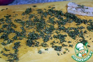 Филе трески обваливать в этом маринаде, разрезать на кусочки длиной примерно 10 см.