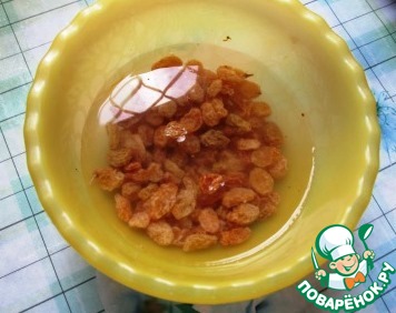 Изюм промываем и заливаем горячей водой
