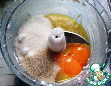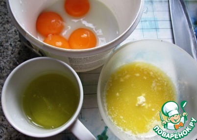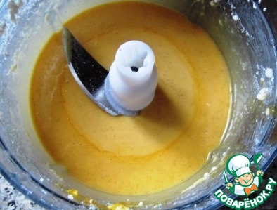 К маслу с сахаром прибавляем желтки, оставшуюся половину сахара, ванильный сахар и апельсиновое пюре