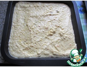 Выкладываем творожную массу в форму, смазанную сливочным маслом.