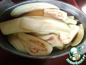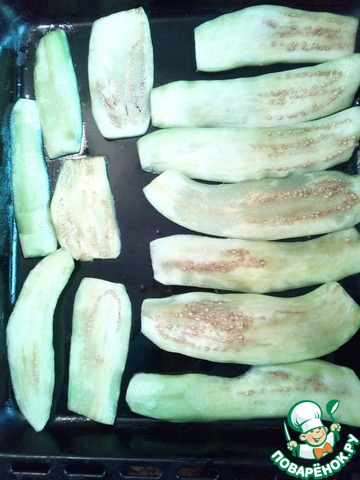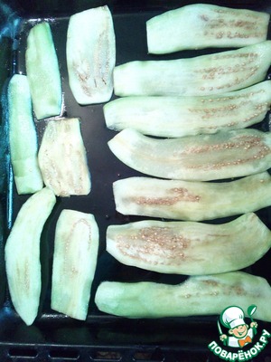 Затем хорошо отжимаем от жидкости и выкладываем на противень, который хорошо смазан растительным маслом.