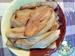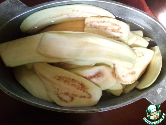 Я очищаю их от шкурки, нарезаю на полоски и вымачиваю в подсоленной воде ( на 1 л холодной воды 1 ст. л. соли).