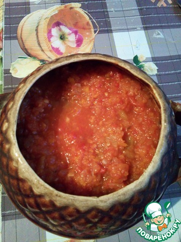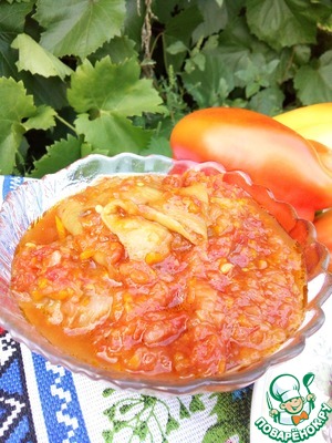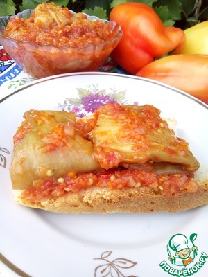 Сижу, кушаю нашу любимую овощную закуску и понимаю, что сюда то я не добавила свой любимый рецепт... И на Поваренке я такого не нашла. Это наша самая любимая закуска из всех. Любимее даже аджики. Я делаю её так, по сезону и в огромных объёмах закрываю на зиму.