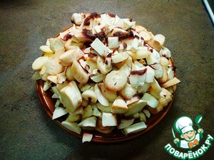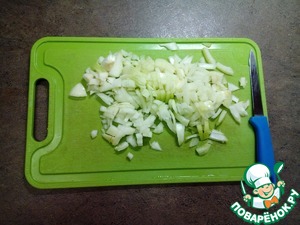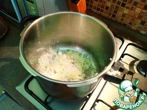 В пароварке (скороварке) разогреваем масло и обжариваем лук, почти доводя до золотистого цвета.