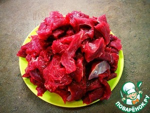 Говядину тщательно промываем под водой и нарезаем кусочками.