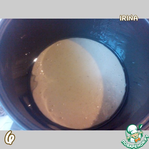 Смазать обильно растительным маслом форму и влить тесто. Установить мультиварку на режим выпечки.