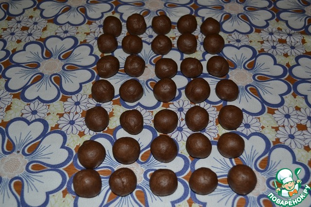 Скатать из теста шарики, величиной с грецкий орех. У меня получилось 35 штучек.