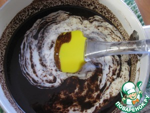 В шоколадно-масляную смесь добавить джем, затем добавить йогурт (можете взять кефир или любую кисломолочку) и все тщательно перемешать