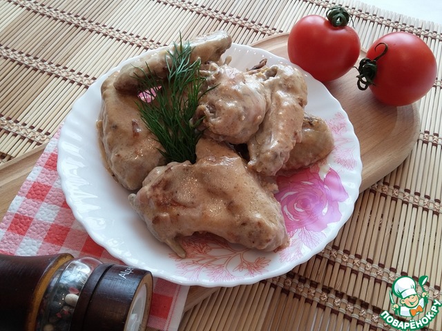Крылышки в сметане готовы. Вкусны как в горячем, так и в холодном виде. Мне нравится это блюдо на следующий день, когда соус превращается в желе. Очень вкусно! -