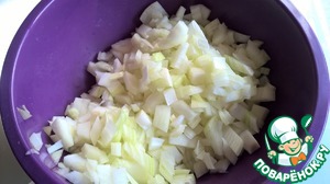 Нарезаем репчатый лук мелким кубиком (3 - 5 мм)