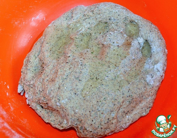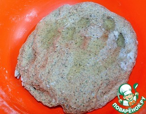 Добавить к мучной смеси солод, соль и зелень. Перемешать.