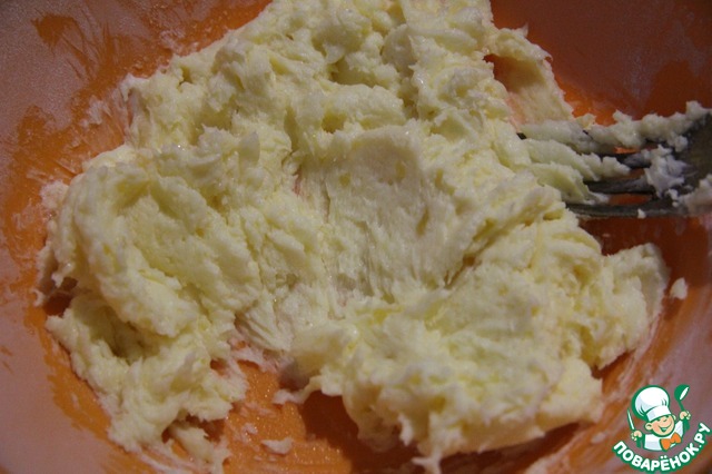 Масло перетереть с сахарной пудрой (я еще добавила щепоточку соли) и медом.