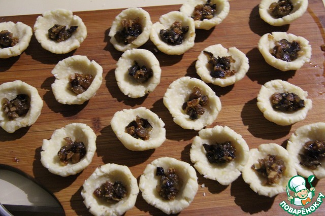 Отделить шарики, размером с грецкий орех, сделать углубление и наполнить начинкой.