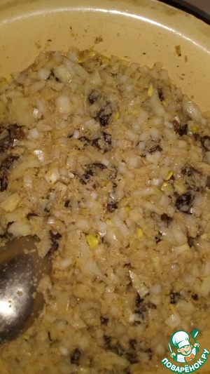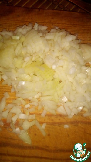 • Пока грибы будут обжариваться и остывать режем мелко лук