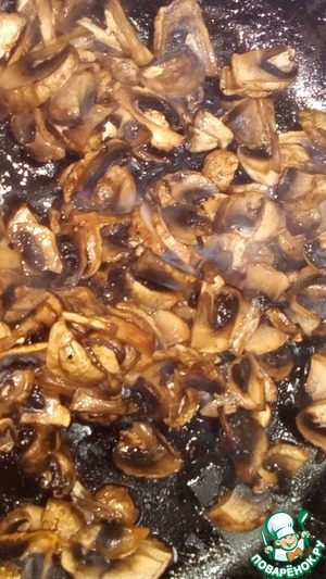 • Грибы моем, нарезаем кому как удобно, я резала пластинками, и пожалела, надо было чуть помельче (на вкус не повлияло ни как). И ставим обжарить.