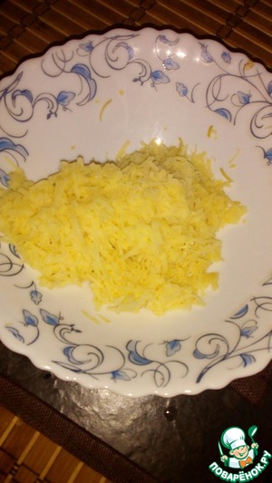 • Отварную в мундирах картофелину чистим и натераем на мелкой терке