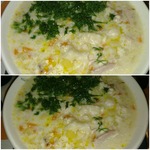 Второе яйцо взбиваем, добавляем пару ложек кипящей водички из супа, размешиваем.
