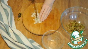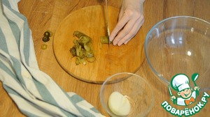Лук режем кубиками и обжариваем на сковороде вместе с грибами.