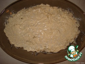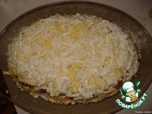 Яйца натереть на крупной терке, выложить на тарелку. (2 желтка я оставила для украшения).