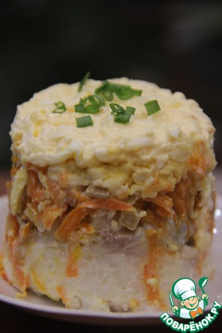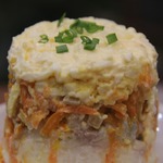 Этот рецепт я узнала совершенно случайно, сынишка кромсал на куски кулинарный блокнотик сестры, а я спасала от него остатки страничек. И вот совершенно случайно взор упал на название салата, прочитала, показался очень простым и интересным. Решила попробовать и не ошиблась.