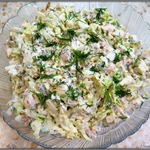 Пекинскую капусту нашинковать произвольно, не очень крупно. ( в салат идет весь лист ) -