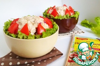 Смешать для заправки натуральный йогурт, лимонный сок, зернистую горчицу (можно заменит на обычную, 1/2 ч. л) и любой острый соус.