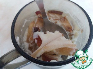 Залейте куски яблока молоком с желатином и добавьте чё хотите