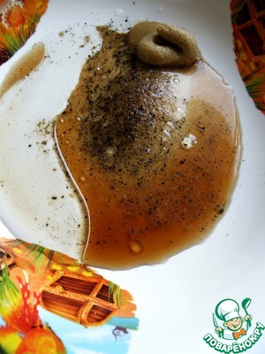 Смешать лимонный сок с ложечкой горчицы, сиропом и черным перцем. Можно посолить, я не солила. Натереть отбивные маринадом и сложить в миску. Слегка придавить легким грузом. Оставить на столе на полчаса.
