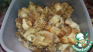 С мяса обрезать лишний жир и плотные пленки, разрезать (разрубить на куски). В идеале освободить от костей, но я этого не делала.