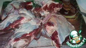 - Мясо (лучше заднюю ногу ягненка или заднюю часть теленка.В моем рецепте задняя нога козленка, не молочного, но еще и не взрослого.) — 1,5 кг
