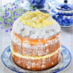 Почему-то мне пирог "Невский" кажется зимним пирогом... Припорошить сахарной пудрой - вот вам сугроб. Украсить сверху "помпоном" - лыжная шапочка! Я пекла его в форме круглого каравая. Таким он и продавался в кулинарных магазинах. Похожий рецепт на сайте есть, однако пропорции и формовка другая. Время приготовления указано без учёта выстаивания бисквита. Рецепт рассчитан на приготовление двух пирогов. Красивой и вкусной зимы всем!!!