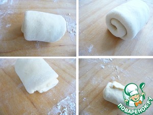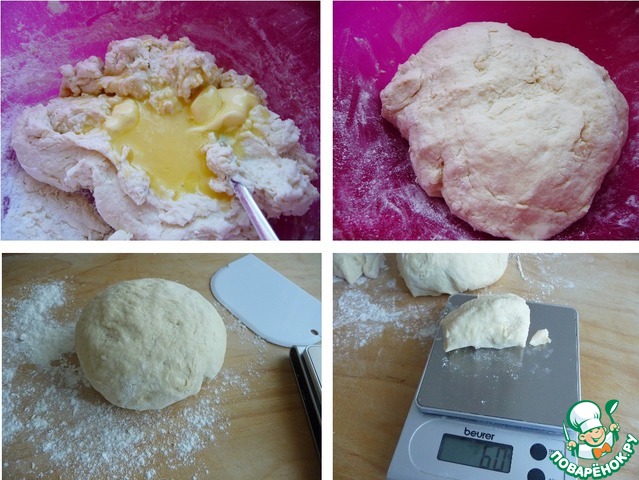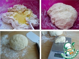 Тесто должно получиться в меру липкое, но сухое, должно свободно скататься в шар, много муки не нужно.