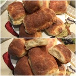 [+5]Делала с покупной рикоттой, упаковка как раз 250 г. Почитав комментарии, сахара положила не 50, а 150 грамм + 10 г ванильного, получилось очень сдобно, на мой вкус немного слаще, чем хотелось бы, так что в следующий раз положу чуть меньше, 120-130 г. Добавляла еще изюм, грамм 50, в принципе он же тоже сладость дает. Изюм в булочках понравился, хорошо сочетается. Муки добавила примерно столовую ложку сверх рецепта, казалось, что тесто все-таки липковато, и во время формовки подпыляла мукой, иначе прилипало к доске. Но в целом рецепт нехлопотный - замесила тесто и скрутила булочки быстро и без проблем. Отмерила первый шарик 60 г, а последующие на глазок - получилось 13 булочек. Смазала яйцом с молоком. Зарумянились и пропеклись за полчаса, поднялись и увеличились не очень сильно. Готовые дополнительно ничем не смазывала, может поэтому они не такие гладкие и глянцевые получились, с плотной и немного бугристой корочкой. На первый взгляд, честно говоря, подумала, что будут сухие и забитые и они действительно не такие воздушные, как дрожжевые булочки - мякиш более плотный, но достаточно пышный, мягкий и очень приятного творожно-рикоттового вкуса. Влюбилась в эти булочки с первого укуса, обязательно буду готовить еще