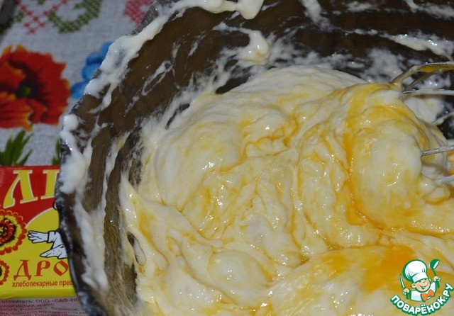 Белок взбить до пиков и вмешать в подошедшее тесто.