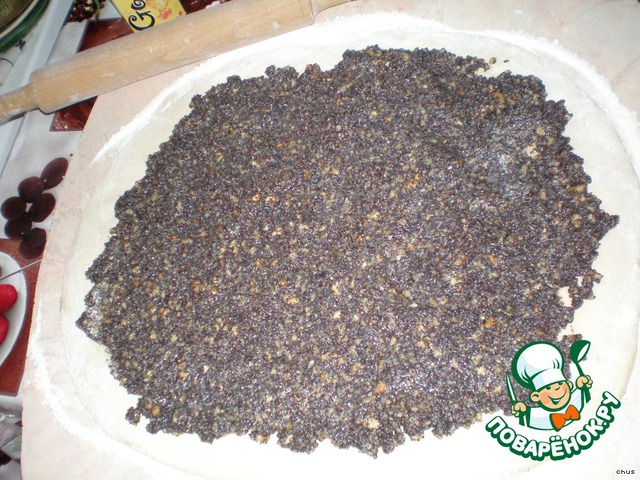 Рецепт «Рулет из дрожжевого теста с маком и грецкими орехами»: