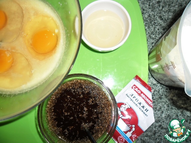 - Дрожжи (сухие быстродействующие дрожжи «САФ-МОМЕНТ» 11 г (в красной упаковке) от компании "САФ-НЕВА") — 1 ч. л.