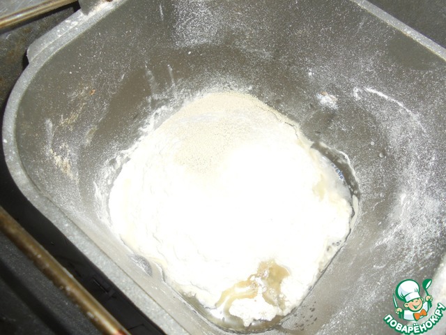 Для теста в чашу хлебопечки выложите ингредиенты в следующей последовательности-в ода, растительное масло, мука, соль, сахар, дрожжи Саф-момент. Включите режим тесто.