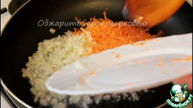 Обжарить лук с морковью.