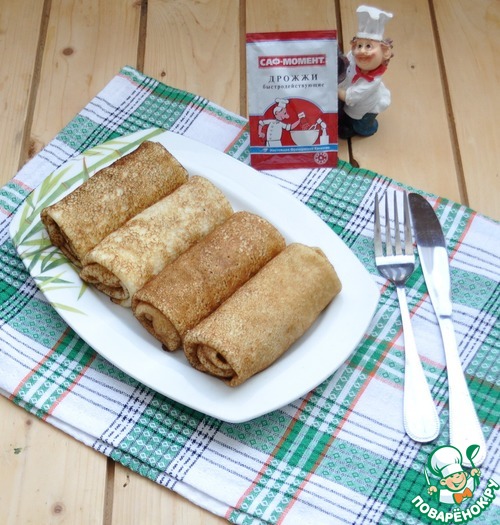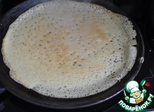 Берём блинную сковороду, смазываем маслом, наливаем тесто половником.