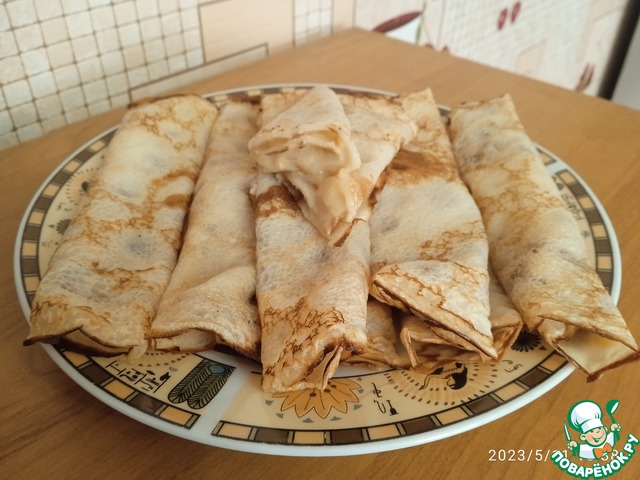 Рецепт «Блины на сыворотке с банановой начинкой»: