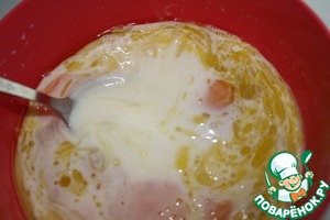Смешать яйца с молоком и растит. маслом.