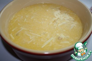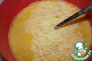 Натереть сыр и смешать с яично -молочной смесью