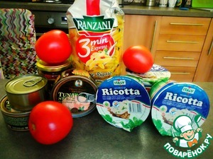 Ингредиенты для «Макаронная запеканка с рикоттой и тунцом»: