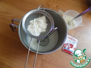 Просеяла муку (это обязательно) 0,5 стакана и поставила опару "на подъем" в тёплое место. Я грею немного духовку.