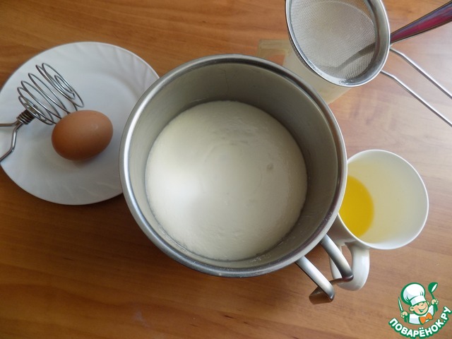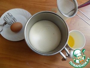 Опара стоит минут 30-40. Масло сливочное растапливаем. Я это делаю в СВЧ 1 минуту при максимальной мощности 800. Добавляем в опару соль, масло и яйцо размешанное, подвзбитое вилкой.