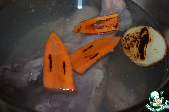 Для получения янтарного прозрачного бульона необходимо подпалить