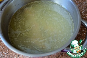 варить бульон на минимальном огне, периодически удаляя образовавшуюся пену. -