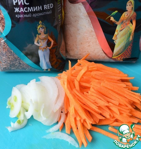 Дать вновь закипеть бульону, засыпать оба сорта риса.