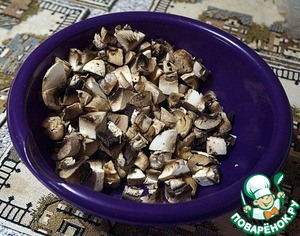 Шампиньоны порезать не слишком мелко, посолить.