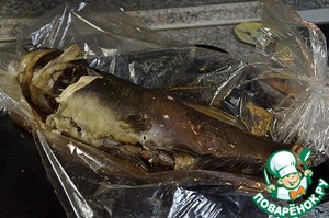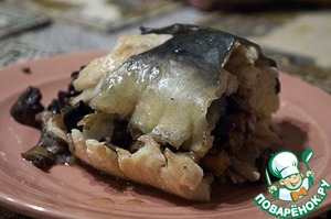 Сом, фаршированный грибами, готов.